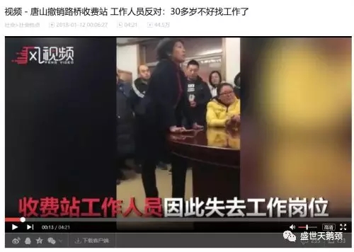 據媒體報道,1月8日起,唐山城市路橋所有收費站停止收費,但這件事卻遭到了收費站工作人員的反對,因為撤銷收費站對他們而言就意味著失去工作。